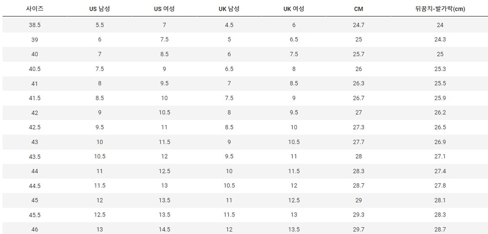 사이즈 차트 참고 바랍니다.